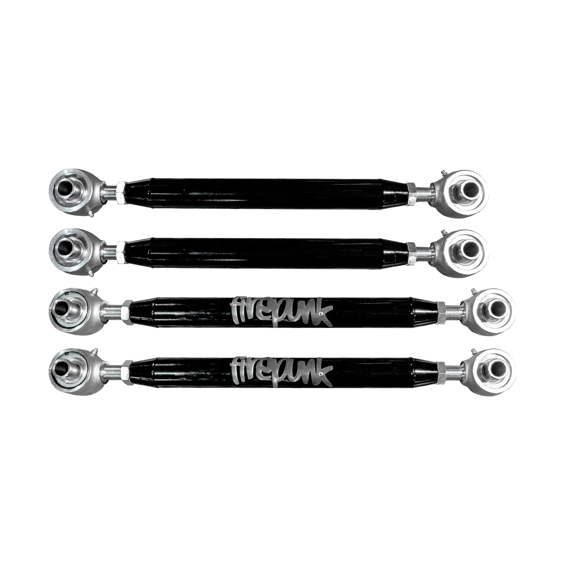 These control arms are designed to be a direct replacement for your factory rear control arms on the 4th and 5th gen Trucks with the Coil Spring rear. They are a custom bore and width so that all factory hardware can be used. We use a rebuildable flex joint with a zinc coated chromoly housing and a delrin bushing. The bars are made of 1.75 x .120 wall tubing with a weld in chromoly tube end. They have approximately 3" of adjustment, 1" shorter than stock to 2" longer than stock so they can be used on a lowered truck or on a mildly lifted truck.